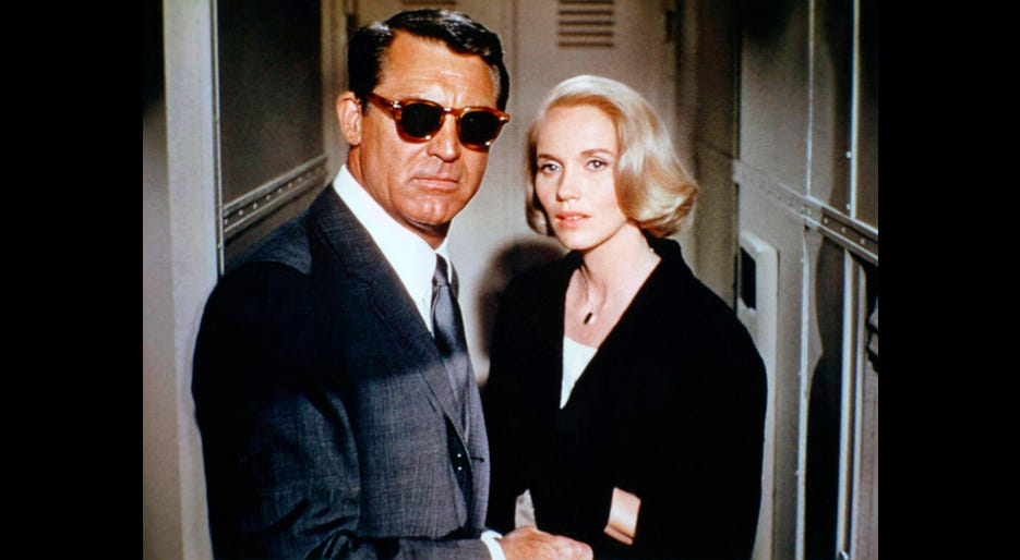 In North by Northwest, Saint is teamed up with Cary Grant with direction from the inimitable Alfred Hitchcock. She thought Grant was funny and elegant while she had some choice words for Hitchcock. (See quotes from Eva Marie Saint farther down the page).
