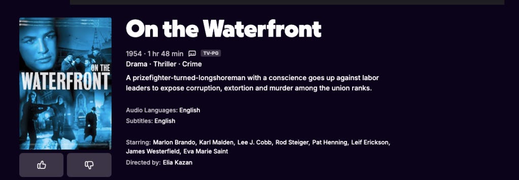 On The Waterfront and Brando’s performance in it is credited as being a huge part of the reason why Hollywood changed its style of acting; from stilted to natural.